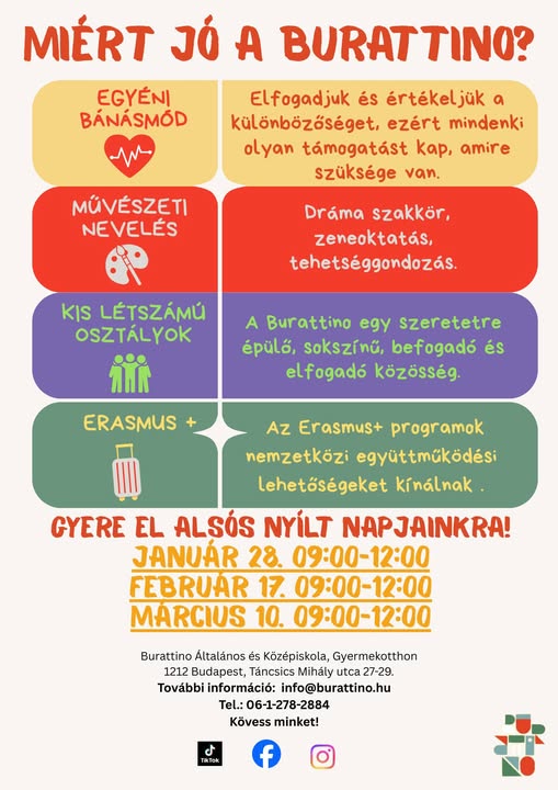 Szeretné, ha gyermeke családias hangulatú iskolában tanulna meg írni, olvasni, számolni? Ha igen, várjuk a Burattino Iskola első osztályban!